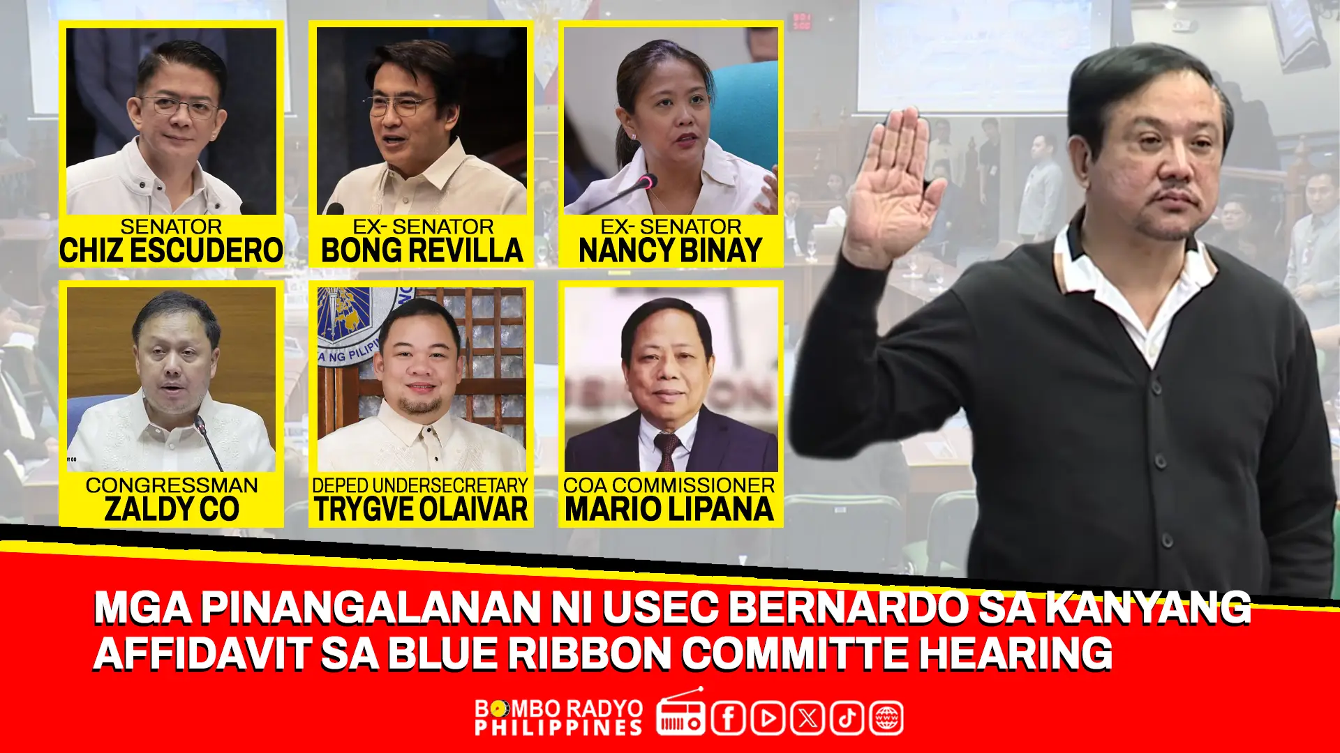 Former Department of Public Works and Highways (DPWH) Undersecretary Roberto Bernardo has named several lawmakers and officials allegedly involved in a DPWH kickback scheme during a Senate Blue Ribbon Committee hearing.