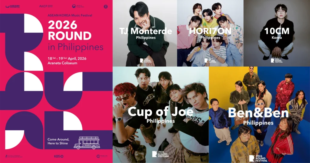 The ASEAN-Korea Music Festival 2026 Round will take place on April 18 and 19 in Quezon City. The festival has previously been held in South Korea, Indonesia, Laos, and Malaysia. In past editions, OPM artists such as SB19, Zack Tabudlo, and KAIA have also graced the festival stage.