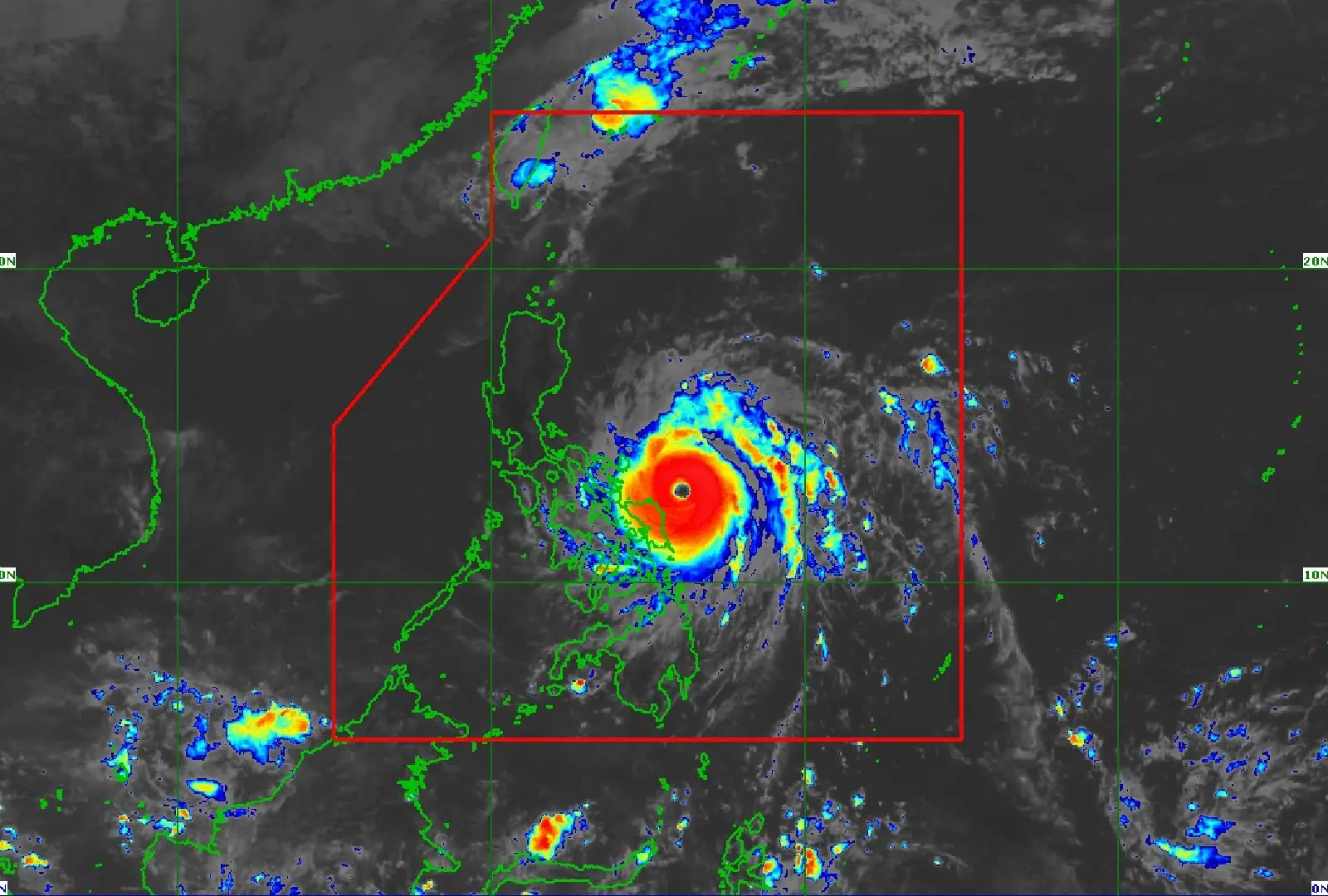 The Philippine Atmospheric, Geophysical and Astronomical Services Administration (PAGASA) reports that the typhoon’s eye was located 185 km east of Catarman, Northern Samar, or 250 km east of Juban, Sorsogon, moving west-northwest at 25 km/h.