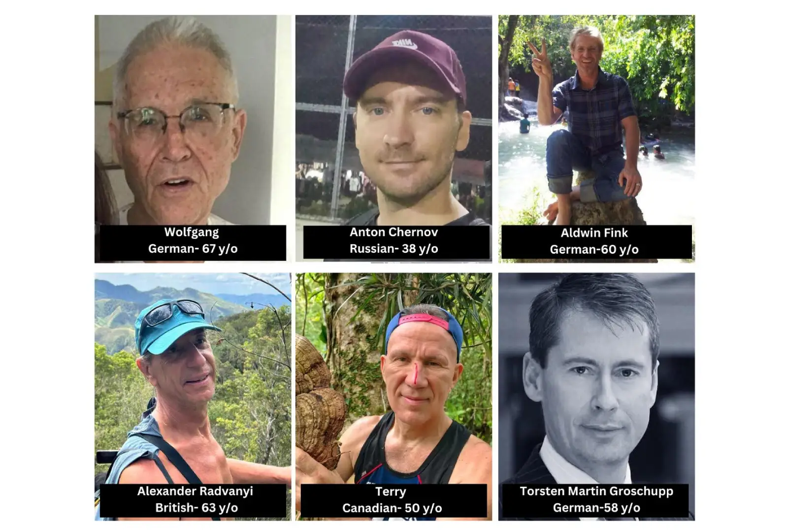Reports indicate that the six foreigners had planned to trek from Valencia to Twin Lakes in San Jose but failed to reach their destination due to the thick forest terrain.