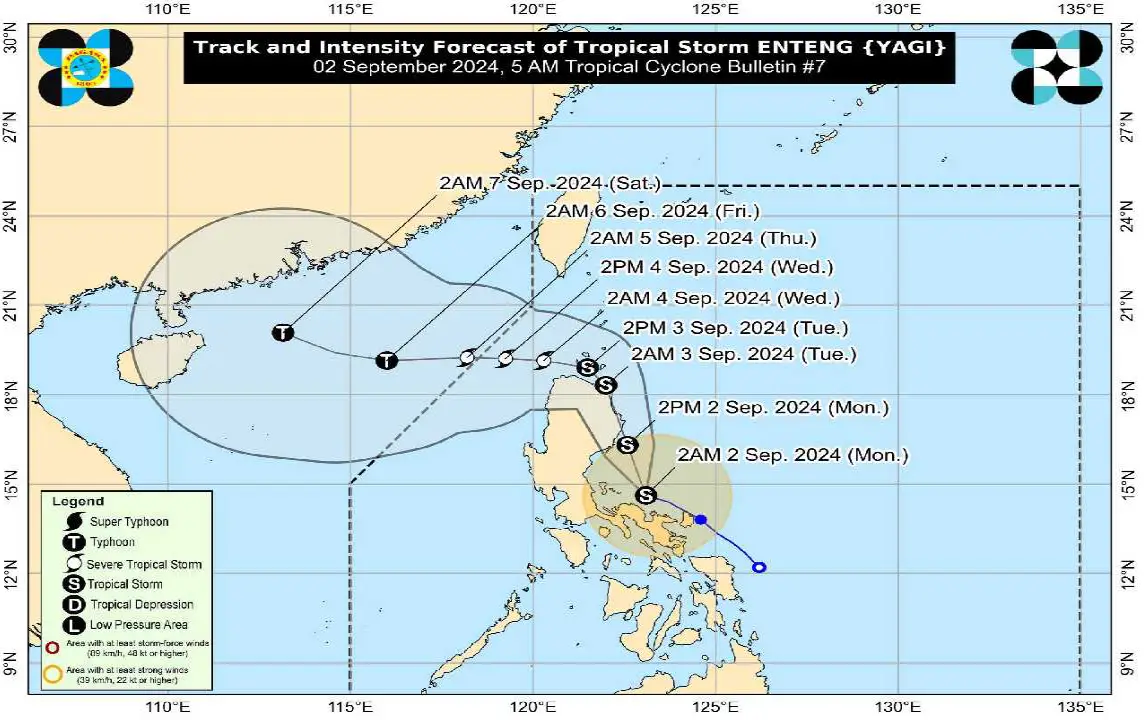PAGASA forecasts that Typhoon Enteng is expected to exit the Philippine Area of Responsibility by Wednesday evening or Thursday morning.
